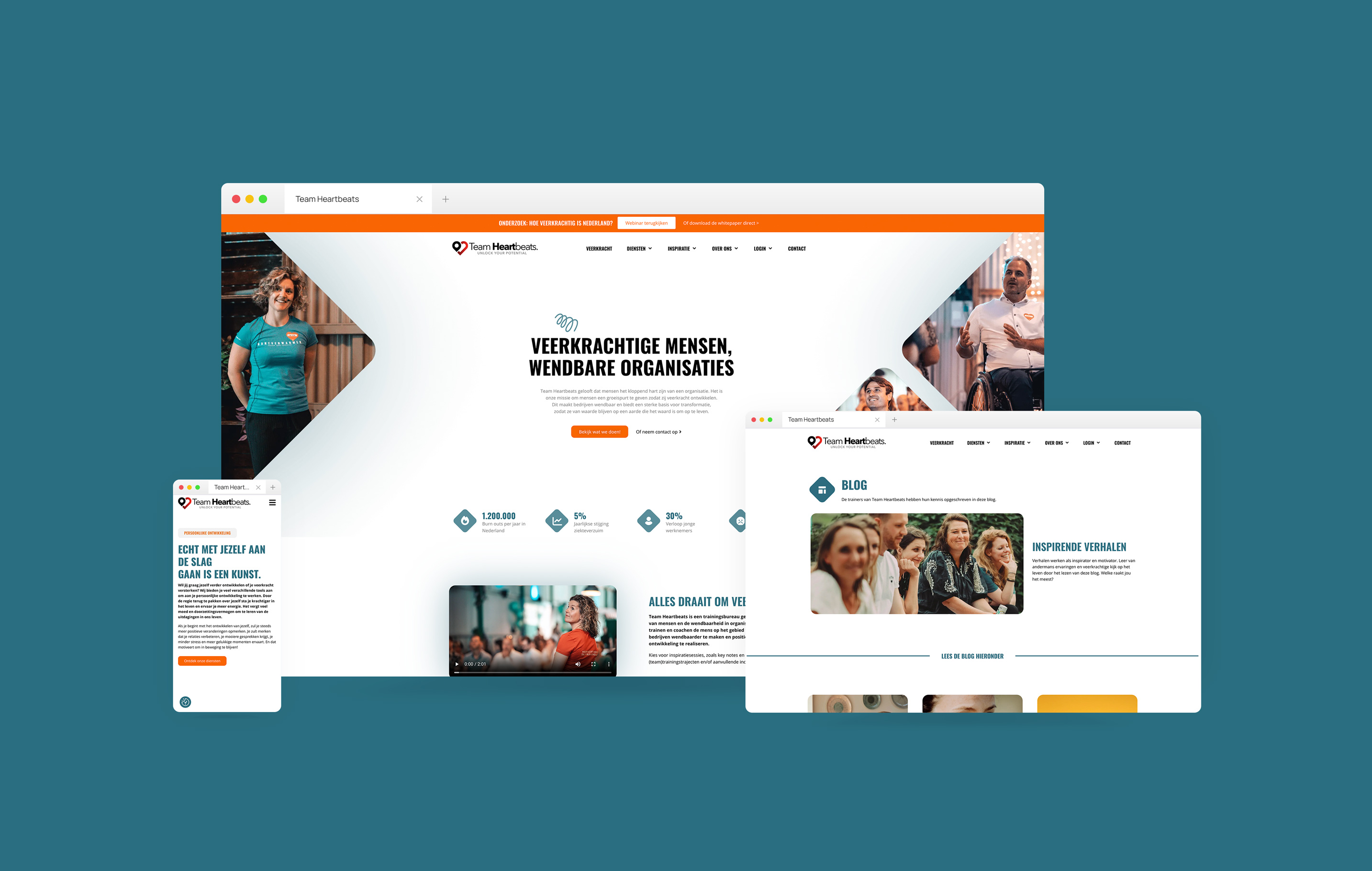 De uiteindelijke oplossing was een creatieve partnerschap. Zo was het onze taak om de unieke identiteit van Team Heartbeats (online) vorm te geven en de organisatie volledig te ontzorgen van alle ontwerp behoeftes. Op de dag van vandaag zijn we nog steeds de creatieve partner van Team Heartbeats en blijven we meedenken, om hun online zichtbaarheid te vergroten. Want klaar dat zijn we nooit. Van het ontwikkelen van een huisstijl tot de social media bijhouden, we ontzorgen team Heartbeats volledig zodat zij zich kunnen focussen op wat telt: ‘Mensen veerkrachtig maken.’