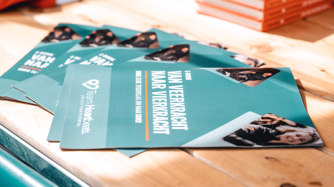 Telkens nemen we de huisstijl van Team Heartbeats volledig over in alle ontwerpen zodat dit naadloos aansluit op elkaar. Zo maken we in eigen stijl de unieke boodschap duidelijk van de organisatie. Denk aan posters/flyers, banners, E-books, illustraties, presentaties, noem maar op. Geen templates maar volledige creatieve vrijheid.
